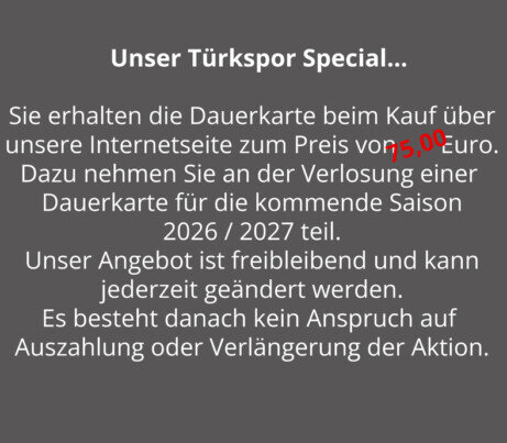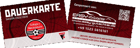 Sie erwerben eine Dauerkarte zu einem Heimspiel der Oberliga Mannschaft TÜRKSPOR NECKARSULM 1969 e.V. Regulärer Preis an der Kasse 80,00 Euro